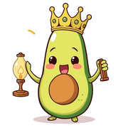 Hail the king of healthy fats! This funny mug features a triumphant avocado in a paper crown, holding a vintage lamp. A delightful gift for avocado lovers.